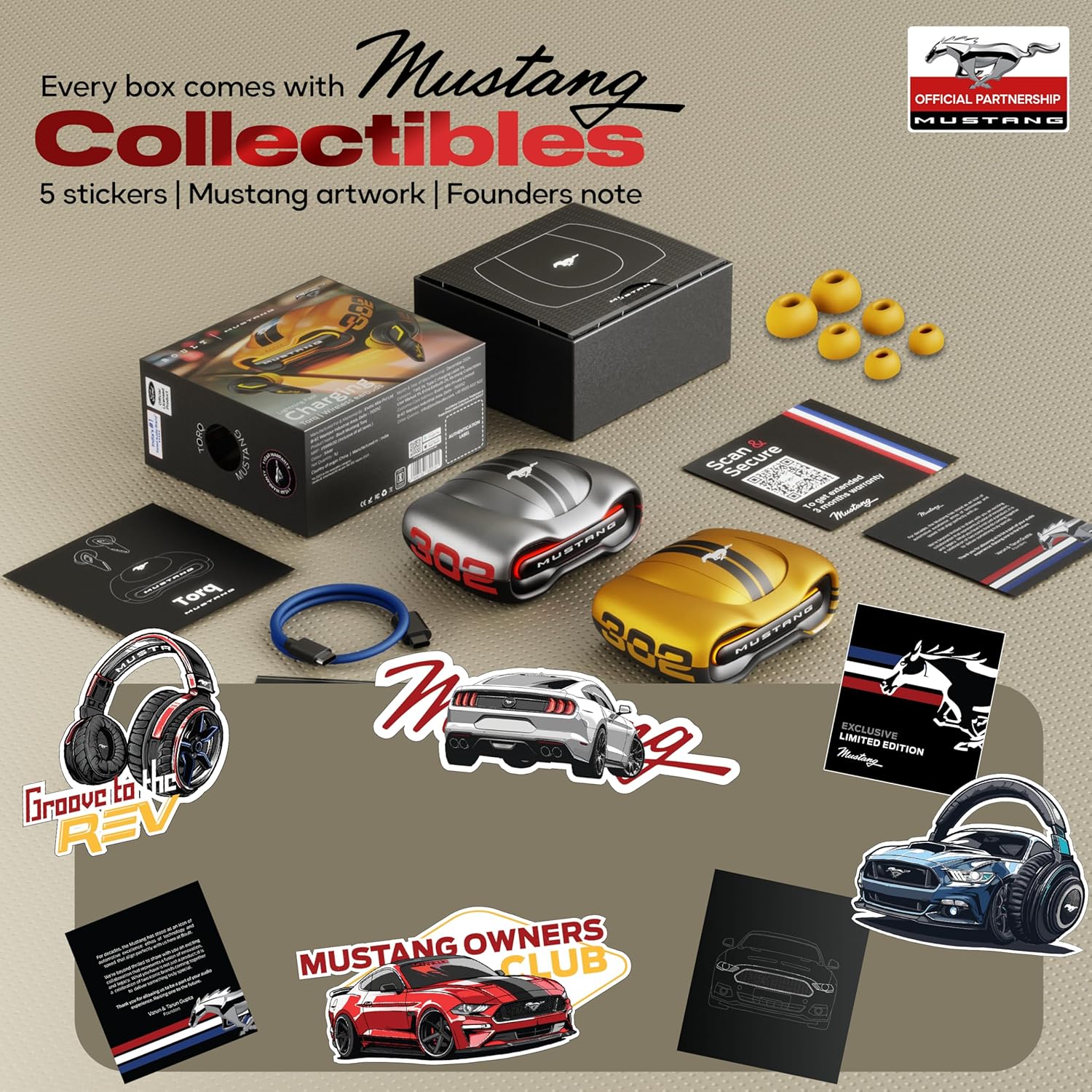 - ✅ Signature Mustang-Inspired Design: The rugged, aerodynamic build with Mustang branding and racing aesthetics makes these earbuds a collector’s item for speed and music enthusiasts.